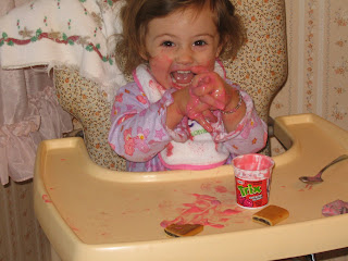 I got to spend some time with the munchkins before moving. This is Capri "washing hands", as she was saying, with her yogurt.